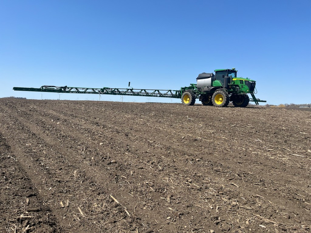 We offer spraying services using a self-propelled John Deere 412R sprayer to spray pre-emerge, post emerge, fungicides and insecticides.